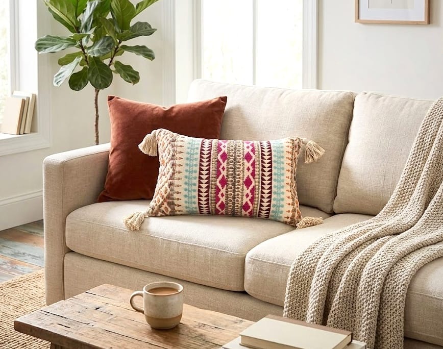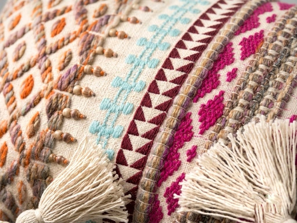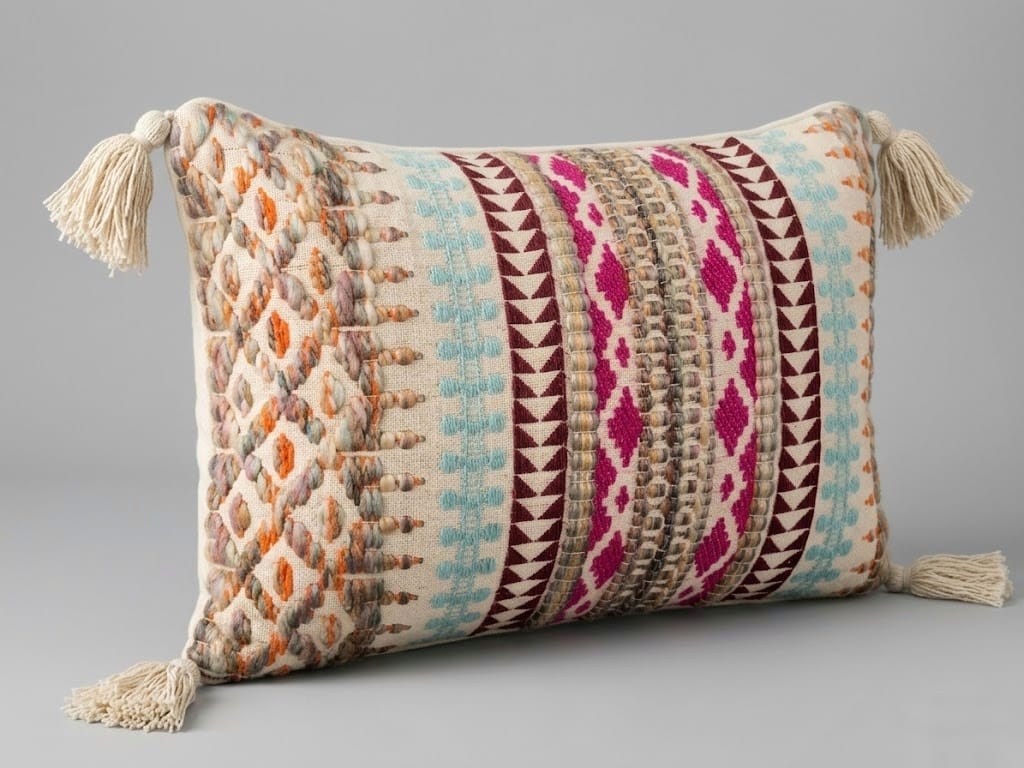 Add a touch of warmth and style to your space with this beautifully crafted boho cushion. Featuring vibrant tribal-inspired embroidery and soft tassel corners, it brings a cozy yet stylish vibe to any room. Perfect for sofas, beds, or lounge areas, this cushion blends comfort with eye-catching design.