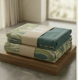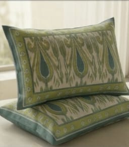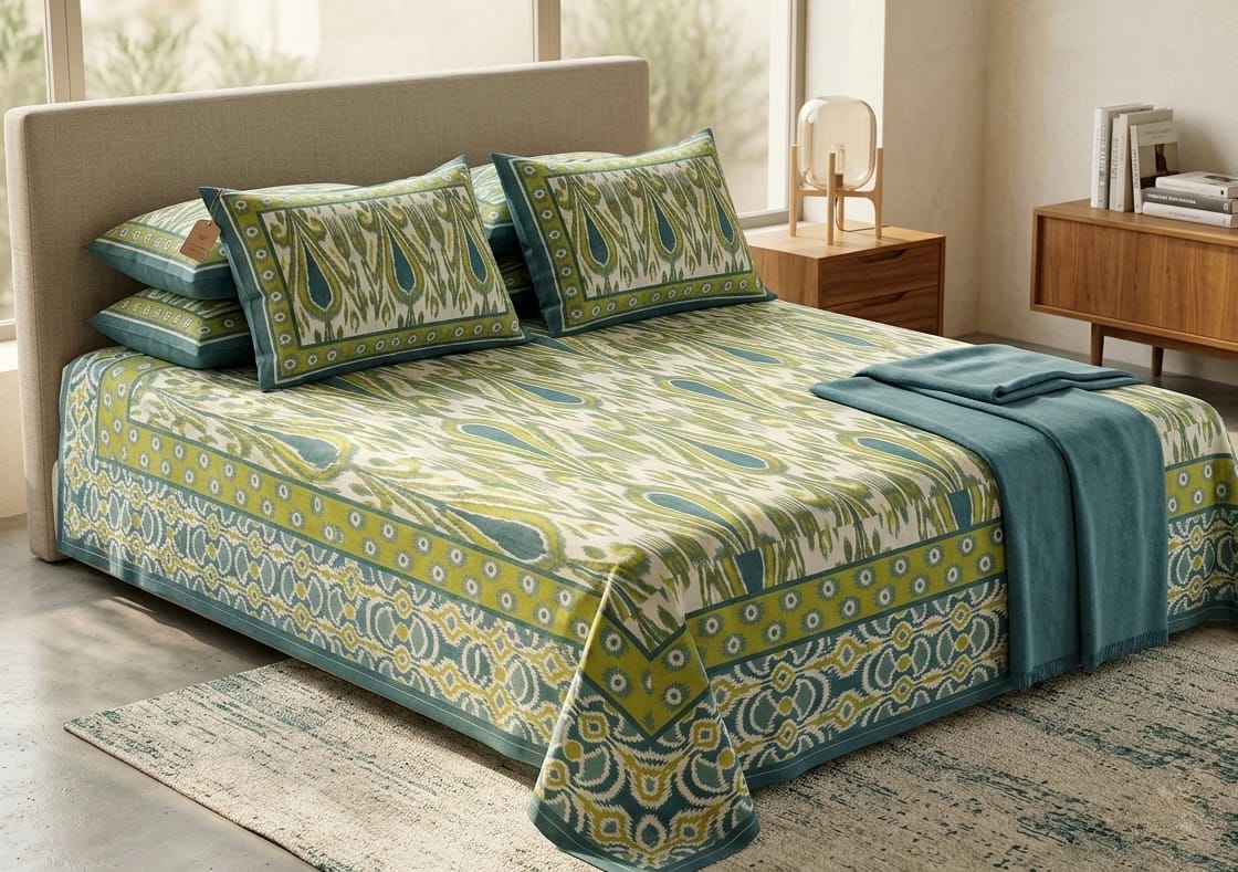 Add elegance to your bedroom with this Green & Blue Ikat Super King Bedsheet, crafted from soft, durable fabric with a vibrant traditional pattern.