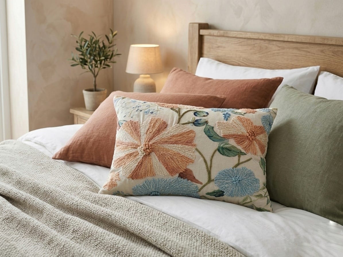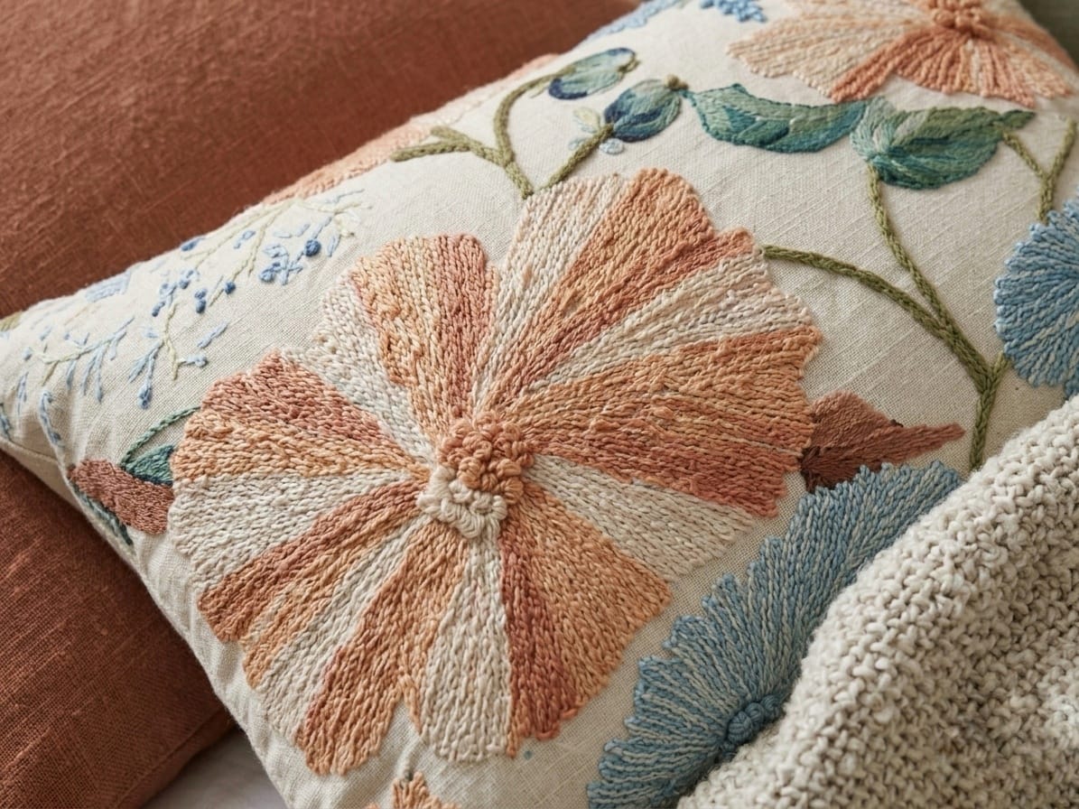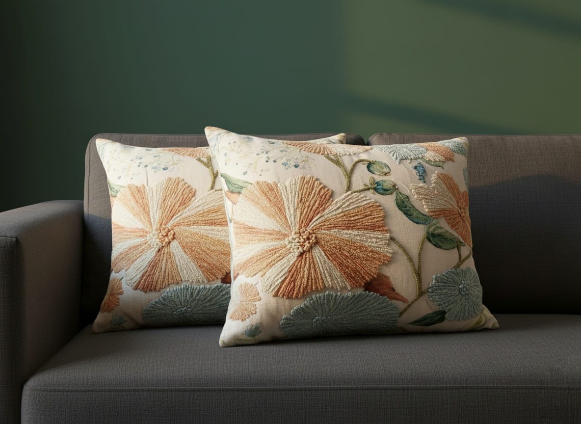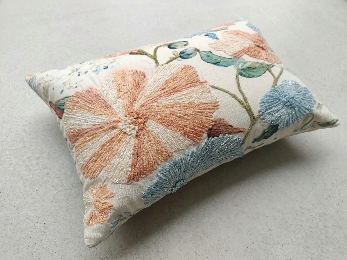 Add a touch of elegance to your home décor with this beautifully embroidered cushion cover featuring soft pastel floral patterns. Crafted from high-quality fabric, it offers a delicate textured design that enhances sofas, beds, or chairs while bringing a fresh and stylish look to any living space.